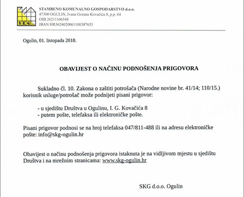 Sukladno čl. 23. Odluke o načinu pružanja javne usluge prikupljanja miješanog komunalnog otpada i biorazgradivog komunalnog otpada na području grada Ogulina (Glasnik Karlovačke županije br. 42/17.) dostavljamo korisnicima usluge Obavijest o prikupljanju otpada za 2019.g.